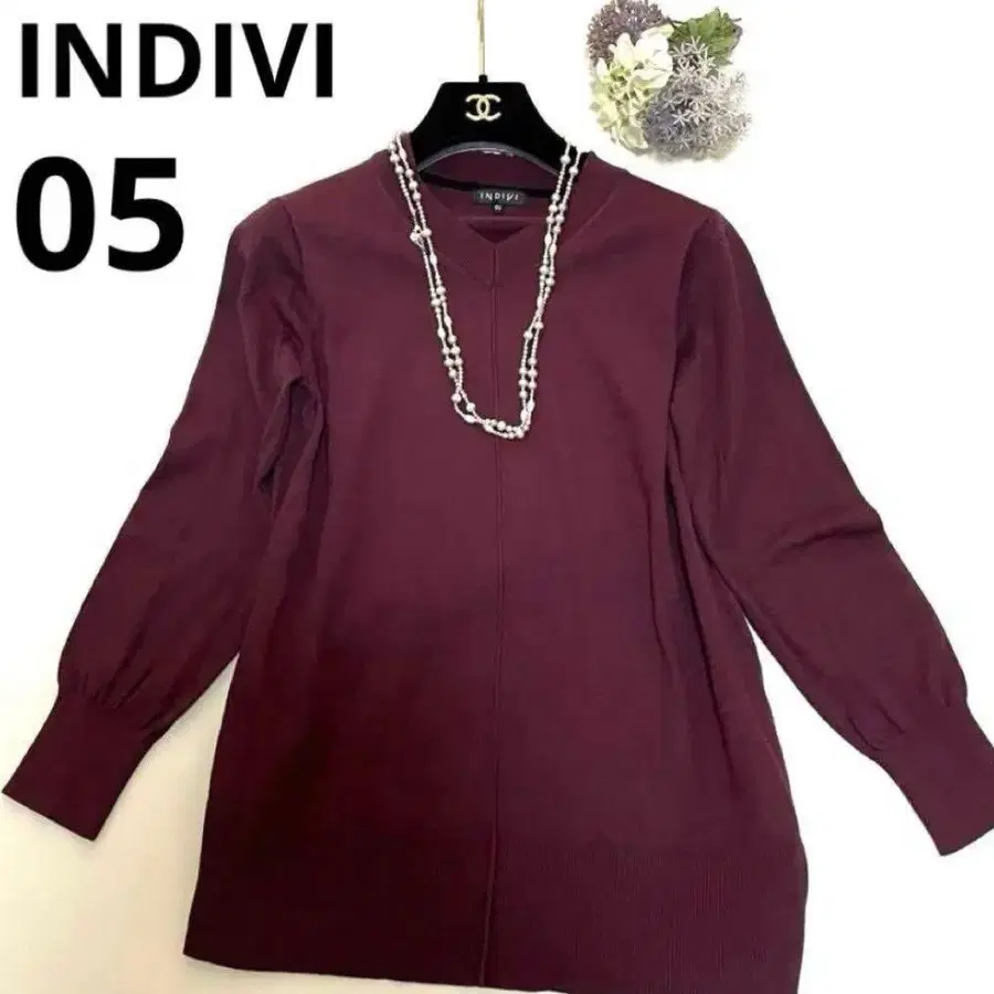 [ 새상품급 ] 인디비 니트 보르도 컬러 사이즈 05 V넥 니트