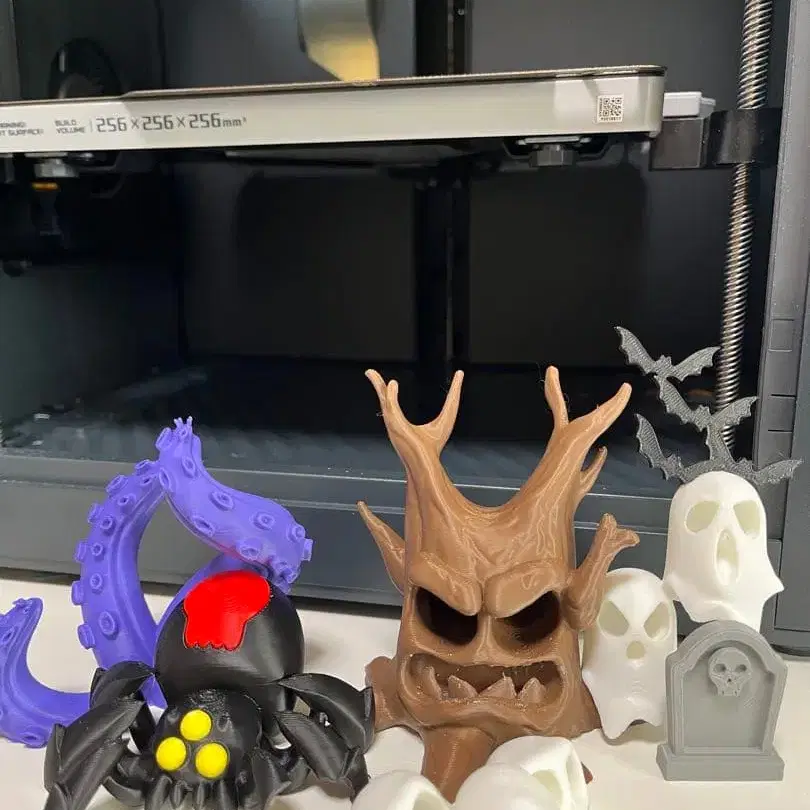 미니 디오라마 호러 세트, 또는 일 년 내내 즐길 수 있는 으스스한 데코레이션! 내용: 유령 같은 얼굴을 한 저주받은 나무, 박쥐 유령, 스타일화된 묘비, 코믹스 스타일의 해골 2개, 노란 눈과 거대한 보라색 촉수를 가진 거미. 잘 부탁드립니다.