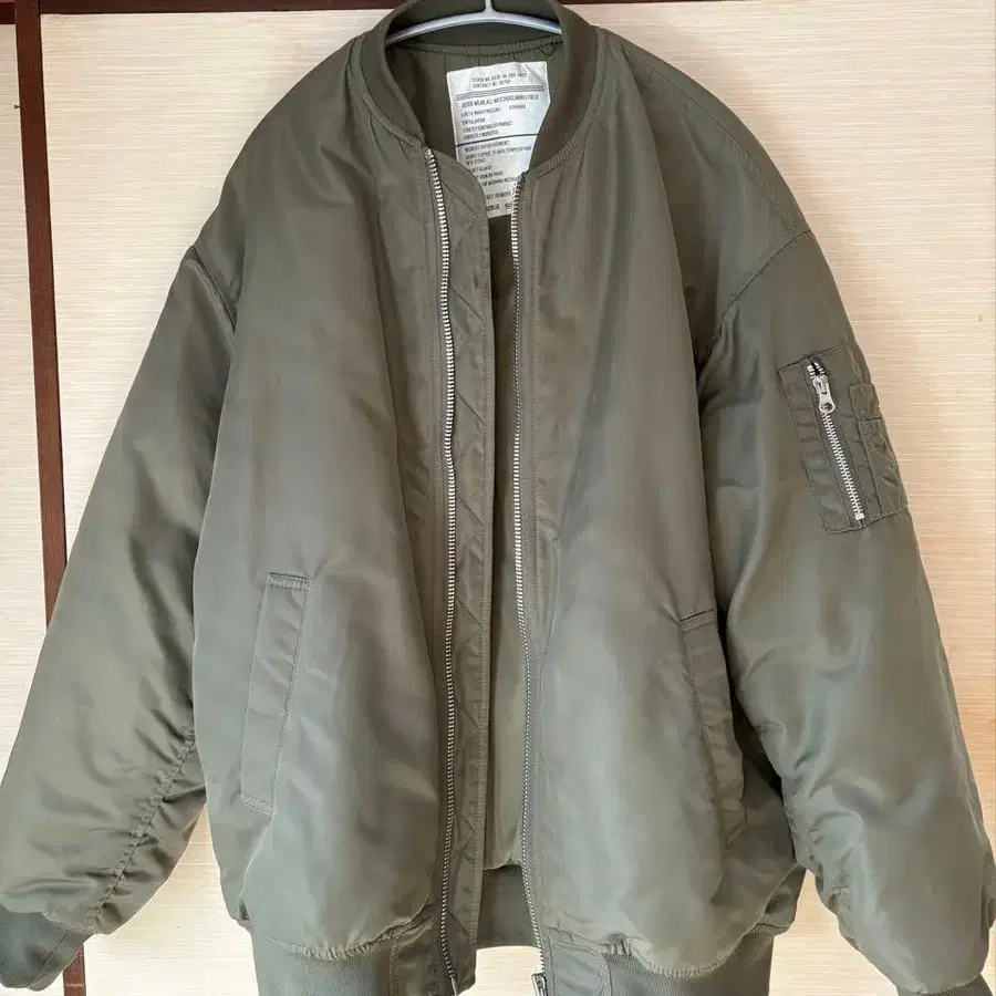 올리브 그린 MA-1 플라이트 자켓, RAGEBLUE 제조, M 사이즈, 내구성이 뛰어난 디자인.