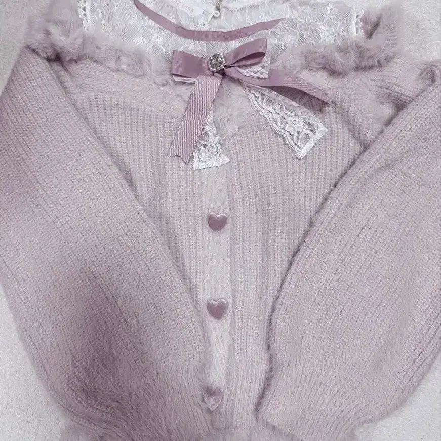 Honey Cinnamon 하트 무늬 리본 니트