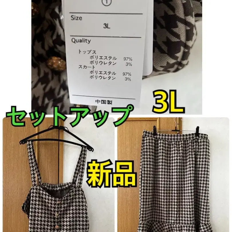 새상품 3L 하운드투스 체크 브라운 셋업 Clette 빅 사이즈 시마무라