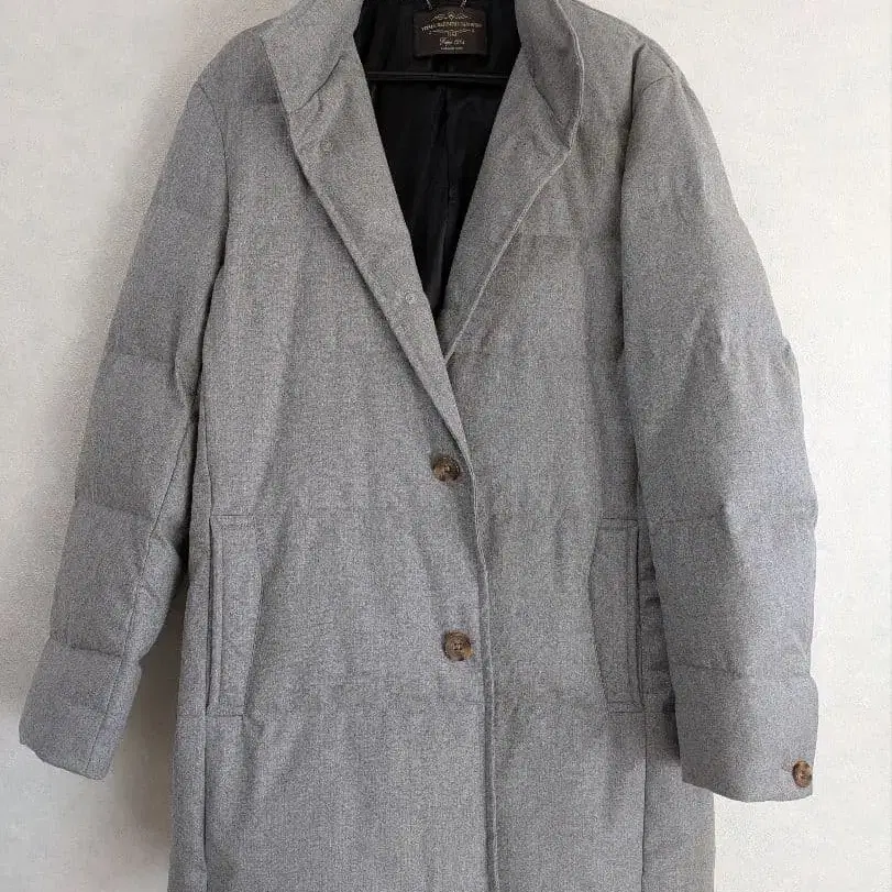 이탈리아의 고급 의류 원단 제조사, 비탈레 바르베리스 카노니코(Vitale Barberis Canonico)의 원단을 사용한 그레이 색상의 남성용 다운 자켓 (또는 코트)입니다.