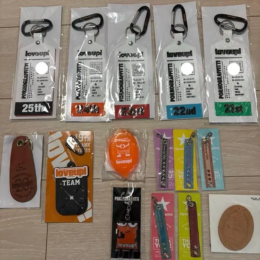 포르노그라피티 팬클럽 loveup! 10~25주년 회원 계속 혜택 굿즈 굿즈가 늘어나서 정리하기 위해 판매합니다. 10주년 가죽 택 11주년~15주년 참 16주년 폴른 군 키링 17주년 수하물 택 18주년 러버 코인 케이스 19주년 타월 홀더 20주년 가죽 키링 21주년~25주년 택 키링 ※ 11주년 참만 사용했습니다. 블랙헤드, 글씨 흐려짐이 있습니다. 21주년 참은 한 번 개봉했지만 미사용입니다. 그 외에는 미개봉 상태로 자택 보관했습니다. 이해해 주시는 분만 잘 부탁드립니다.