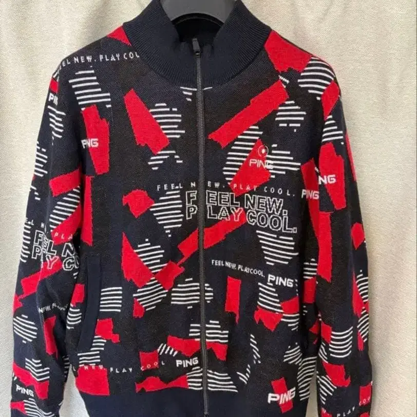기하학 패턴 디자인이 특징인 PING 집업 자켓입니다.