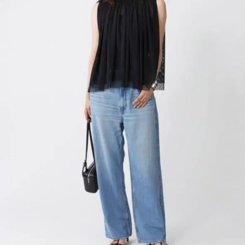 부드럽고 드레이프성이 있는 소재가 특징. 슬림해 보이는 와이드 데님
