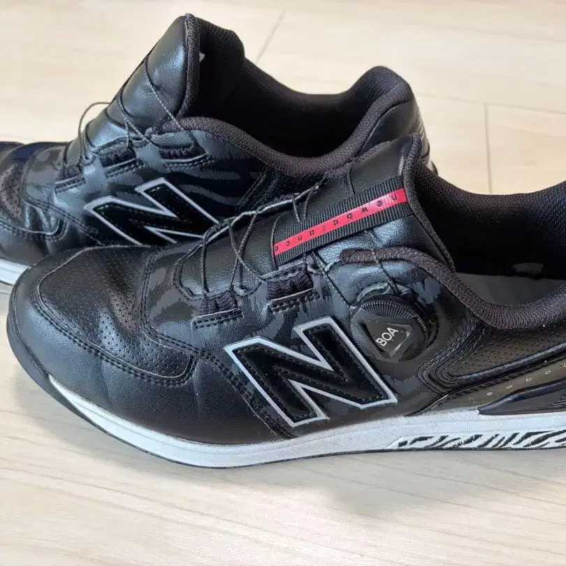 BOA 시스템을 탑재한 블랙의 스타일리시한 골프화입니다. 클리닝 완료되어 새상품과 같은 광택이 납니다.