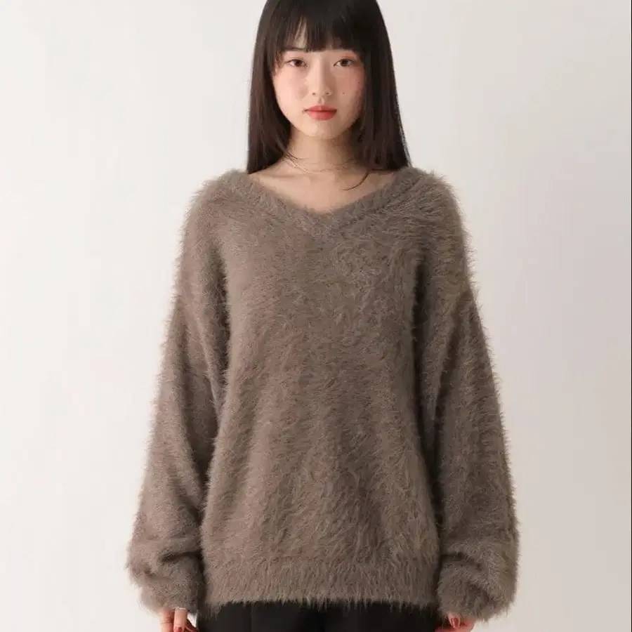 • Ada. 장모 페더 얀 V넥 샤기 니트
