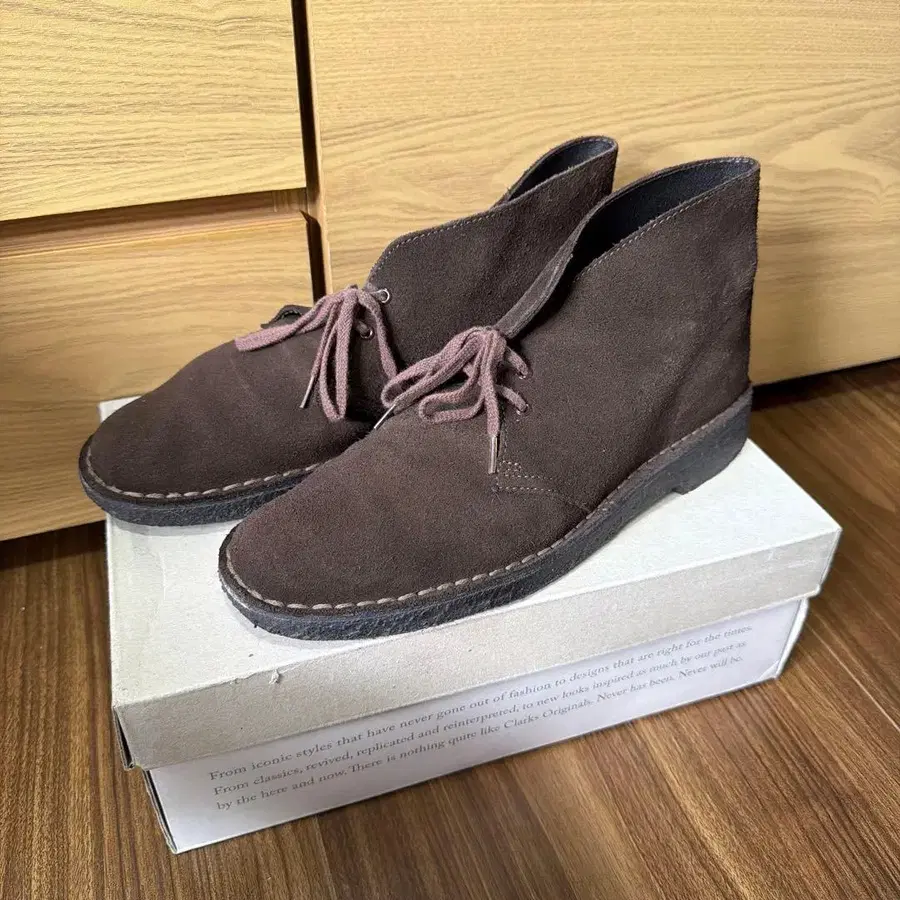브라운 스웨이드 소재로 만들어진 처카 부츠, 러버 솔로 쾌적한 착용감.