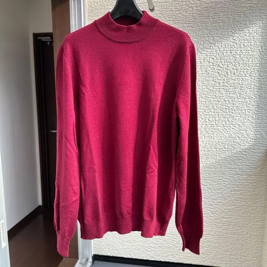 돌모어 빨간색 리브 하이넥 스웨터