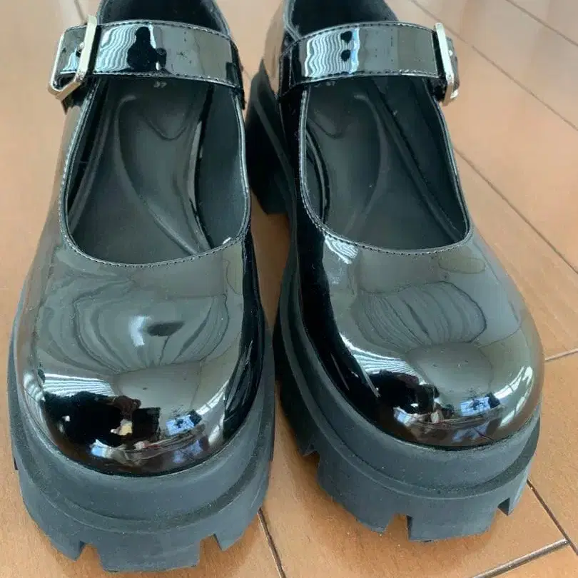 ZARA 에나멜 스트랩 슈즈 트랙 밑창 메리 제인 통굽 블랙
