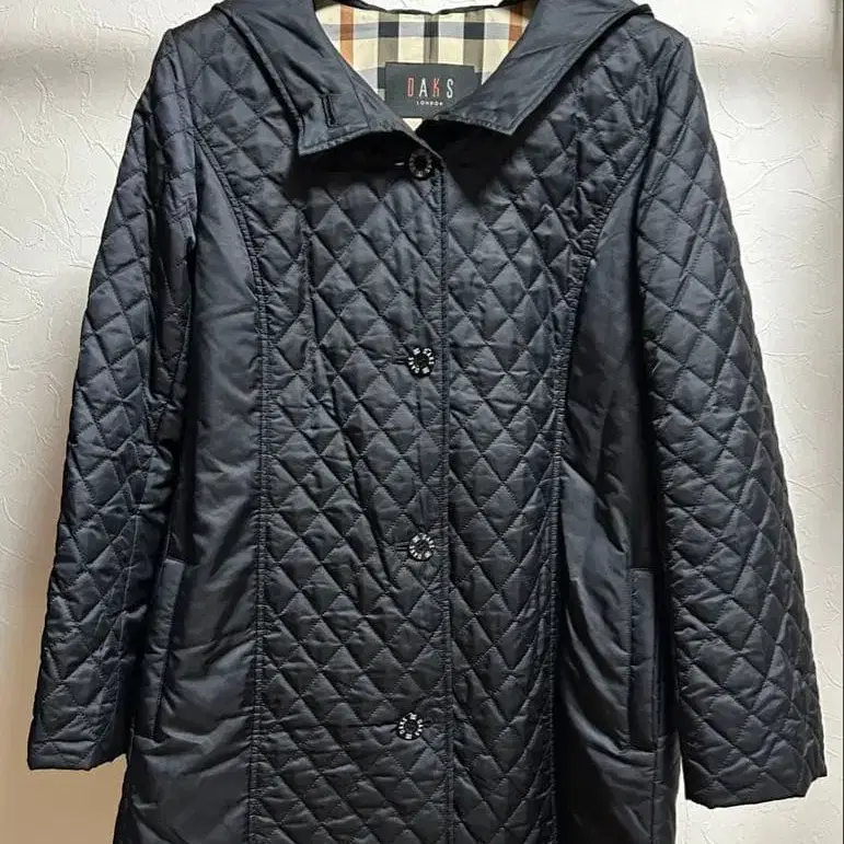 DAKS 블랙 퀼팅 자켓, 체크 무늬 안감 부착으로 스타일리시합니다. 사이즈 42 폴리에스테르 (겉감) 100% 큐프라 (안감) 100% 실측 사이즈 어깨 너비 40cm 가슴 너비 51cm 기장 81cm 상태 착용감 없는 새상품급입니다. 중고품이라는 것을 이해하시는 분께 부탁드립니다.