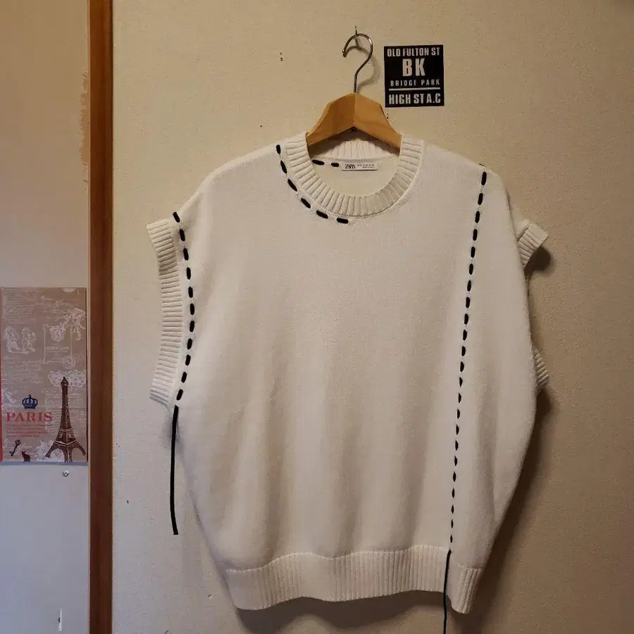 ZARA 브랜드의 면 100% 소재 민소매 스웨터입니다.