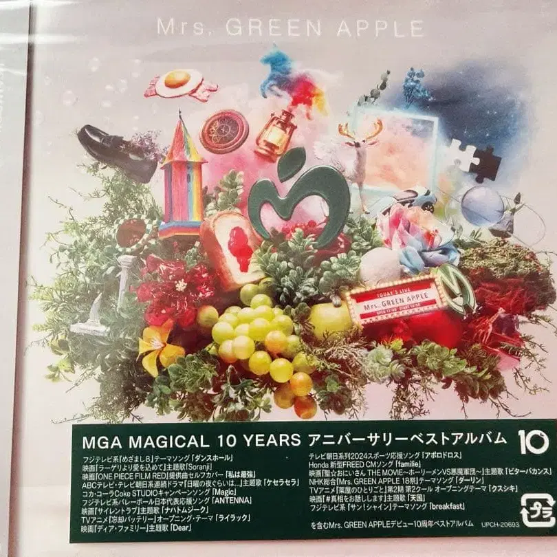 Mrs. GREEN APPLE 10주년 기념 앨범 10 일반ver 1. 뉴 마이 노멀 2. 댄스 홀 3. Soranji 4. 나는 최강 5. 케세라세라 6. Magic 7. ANTENNA 8. 나흐트 무지크 9. 라일락 10. Dear 11. 콜럼버스 12. 아폴로도로스 13. familie 14. 비터 바캉스 15. 달링 16. 쿠스시키 17. 천국 18. breakfast 19. 기쁨의 씨앗 스페셜 코드는 없습니다. 개봉했습니다. CD는 미재생이지만, 초기 스크래치 등을 신경 쓰시는 분은 구매를 삼가해 주십시오.