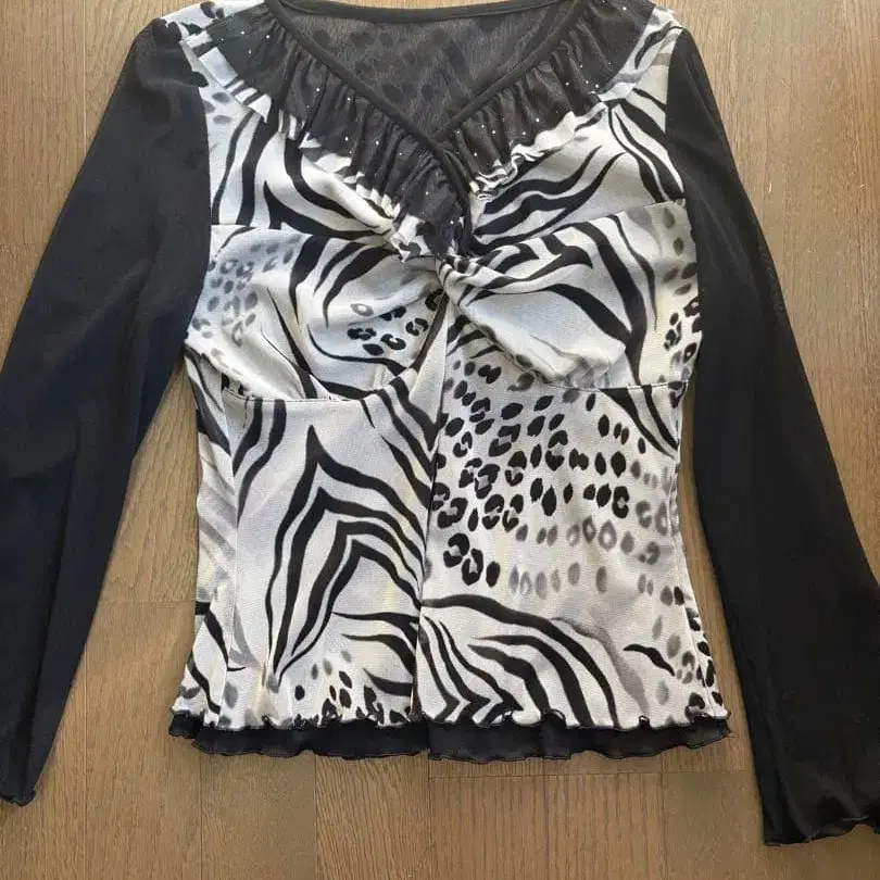 프릴과 동물 패턴이 특징인 긴팔 상의. 사이즈는 9호입니다. M보다 작습니다. - 색상: 화이트, 블랙, 그레이 동물 패턴 - 디자인: 프릴이 달린 디자인 - 소재: 폴리에스테르 100% - 사이즈: 9 방문해 주셔서 감사합니다. #이타리야 #여성용블라우스