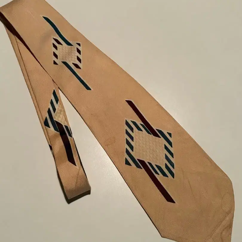 빈티지 넥타이 베이지 기하학 패턴 아르데코 로카빌리 40s 50s