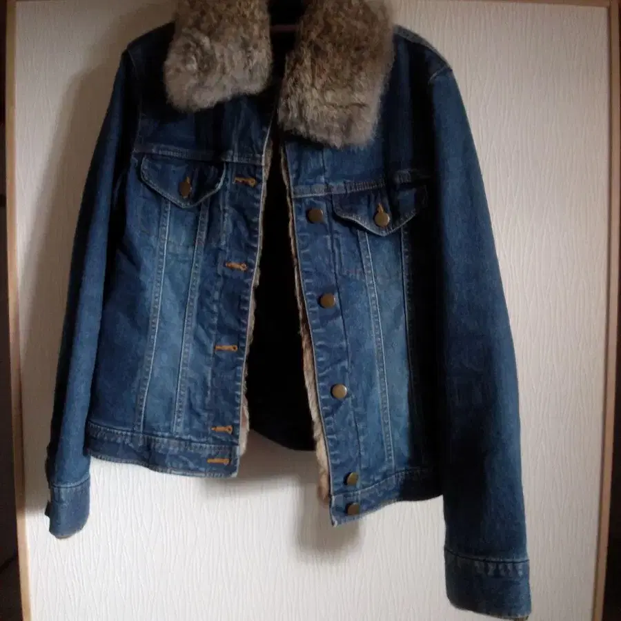 데님 소재의 퍼 카라 부착 자켓, 퀼팅 안감으로 보온성 있음. 내부 퀼팅은 탈부착 가능합니다. - 색상: 데님 블루 - 소재: 데님 - 옷깃 소재: 퍼 - 안감 소재: 퀼팅 - 스타일: 데님 자켓 - 디자인: 단추식 - 포켓: 프론트 포켓 있음. 방문해 주셔서 감사합니다.