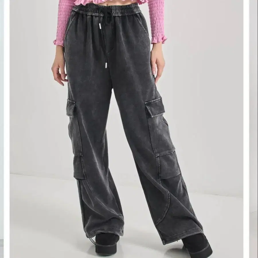 ANAP 워시 가공 맨투맨 카고 팬츠 블랙