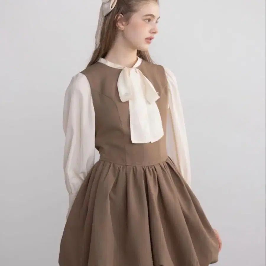 DONOBAN 도노반 새상품 속기모 티어드 원피스 브라운 숏