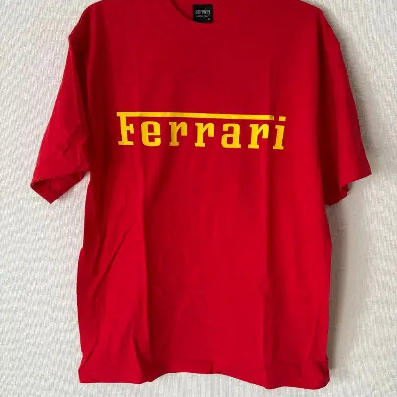 선명한 레드 컬러에 Ferrari 로고가 돋보이는 티셔츠입니다.