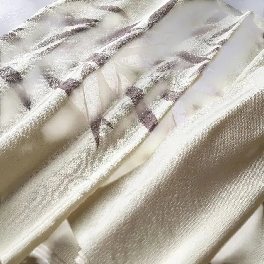 아이보리 색상의 대나무 잎 무늬 실크 오비 장식 천.
