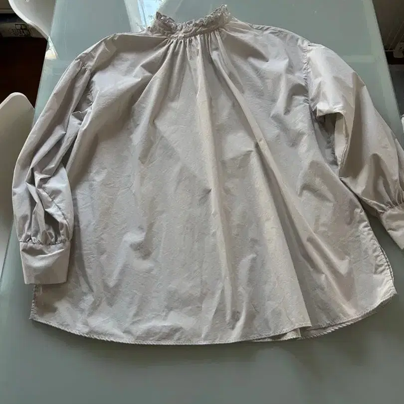프릴이 달린 넥라인과 벌룬 실루엣이 특징인 라이트 그레이 색상의 긴팔 셔츠. - 브랜드: 가마쿠라 셔츠 - 색상: 라이트 그레이 - 디자인: 프릴이 달린 넥라인 - 소매: 긴팔 - 스타일: 벌룬 실루엣 방문해 주셔서 감사합니다.