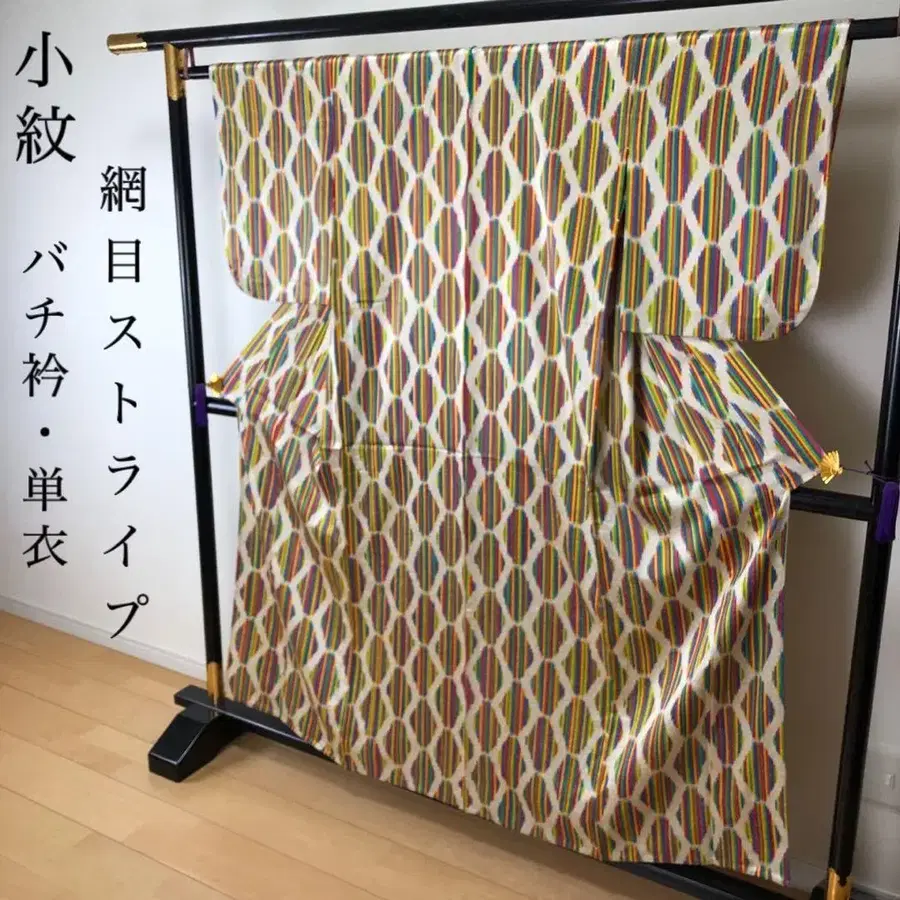 팔로워 한정 할인 중입니다!! 자세한 내용은 프로필을 확인해 주세요 ♪ #기모노산시메이 ↑↑check↑↑ ☆★ ☆★ ☆★ ☆★ ☆★ ☆★ ☆★ [ 상품 내용 ] ~설명~ 망사 문양에 컬러풀한 스트라이프가 매우 멋진 코몬 기모노입니다 ^ ^ 눈에 띄는 흠집이나 얼룩은 보이지 않습니다. 색감은 3번 사진을 참고해 주세요 ♪ ~소재~ 순수 실크 ~종류~ 코몬 바치 카라 홑옷 ~치수 ( cm ) ~ 기장: 154 화장: 62 소매 길이: 48 소매 폭: 32 앞 폭: 23 뒷 폭: 31.2 화장 어깨 부분: 1.5 화장 소매 부분: 0.5 단 길이: 0 ※ 기장은 어깨부터 ※ 약간의 오차는 양해 부탁드립니다. ⚠ 중고품입니다. 접힌 주름, 눌린 자국, 냄새가 있을 수 있습니다. ⚠ 보시는 단말기에 따라 색감이 달라질 수 있습니다. 양해 부탁드립니다. ☆★ ☆★ ☆★ ☆★ ☆★ ☆★ ☆★ [ 반드시 프로필을 확인해 주세요 ] 모든 내용을 납득하신 후 구매 부탁드립니다. 팔로우 부탁드립니다 (^-^) #리사이클기모노 #중고기모노 #키모노 #기모노 #호몬기 #츠케사게 #코몬 #오메시 #츠무기 #나고야 오비 #쿄후쿠로 오비 #앤티크 #다이쇼 로망 #오시마 명주 #후리소데