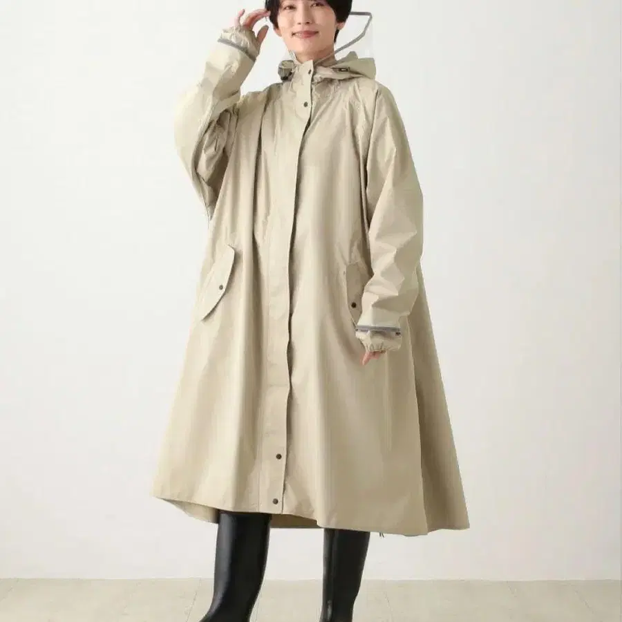 후드 부착 베이지 레인코트, 롱 기장으로 여유로운 실루엣. - 색상: 베이지 - 디자인: 후드 부착, 버튼 개폐, 포켓 부착 - 스타일: 롱 기장, 여유로운 실루엣 - 용도: 레인코트, 아웃도어, 일상 사용 2025년 4월경 매장에서 구매. 시착만 한 상품입니다. 완판템 방문해 주셔서 감사합니다.