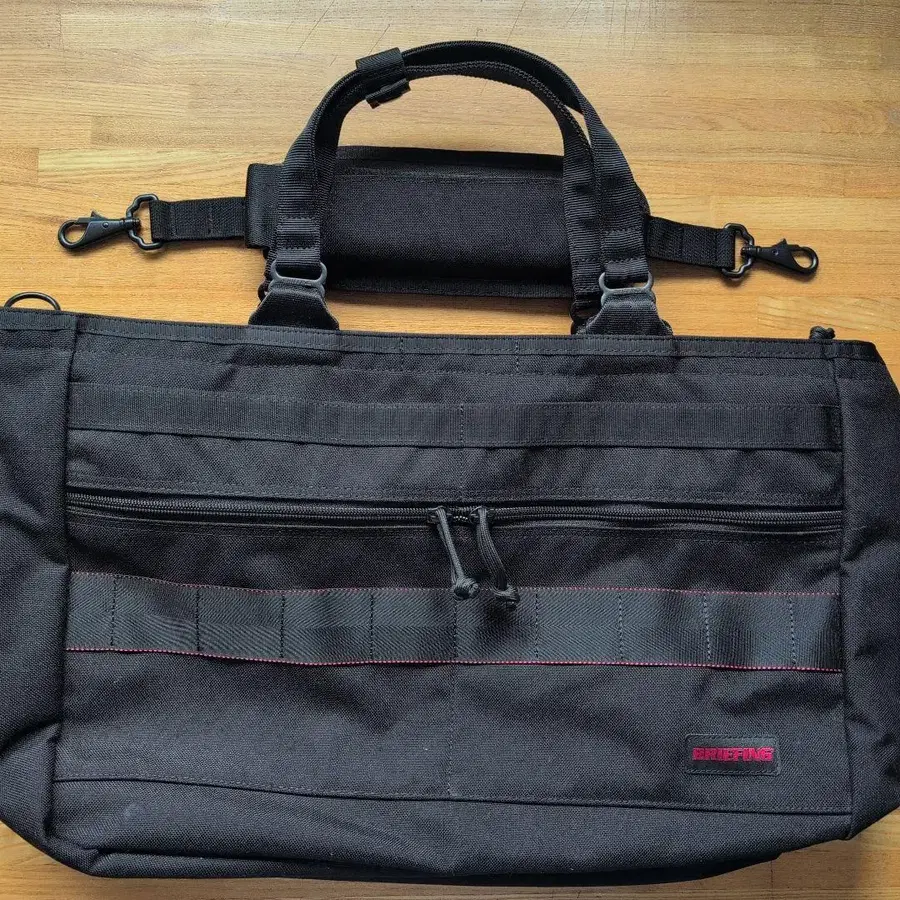 외부 포켓과 몰 시스템을 갖춘 블랙 비즈니스 백.