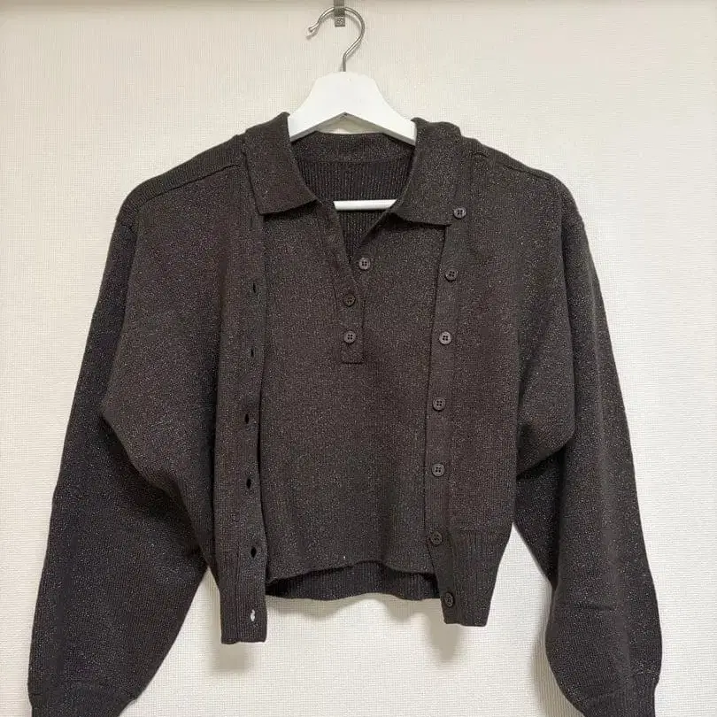 브라운 버튼 크롭 가디건, 로고 포함. - 색상: 다크 그레이 - 디자인: 버튼 가디건 - 스타일: 크롭 기장 - 소매: 긴팔 방문해 주셔서 감사합니다. 사이즈 - FREE SIZE