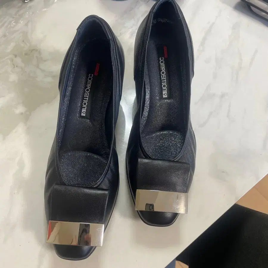 블랙 스퀘어토 디자인에 메탈 디테일이 특징인 낮은 힐의 펌프스. - 색상: 블랙 - 디자인: 스퀘어토 - 굽 높이: 낮은 힐 - 장식: 메탈 디테일 방문해 주셔서 감사합니다.