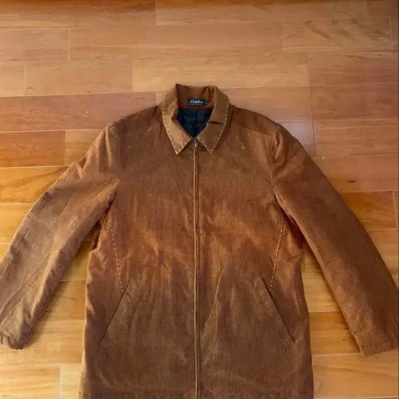 코듀로이 소재의 브라운 자켓, 지퍼식, M 사이즈.