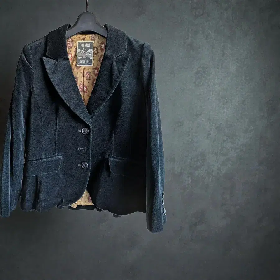 PINK HOUSE 코듀로이 테일러드 자켓, 꽃무늬 안감 부착.