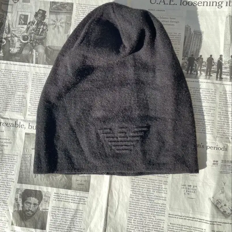 엠포리오 아르마니 블랙 로고 장식 얇은 소재 깊은 니트 비니