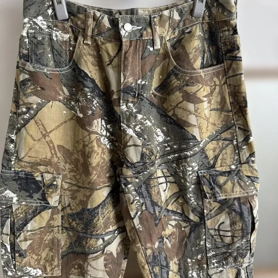 카모플라쥬 디자인의 카고 팬츠, 4개의 포켓으로 기능성도 뛰어납니다.