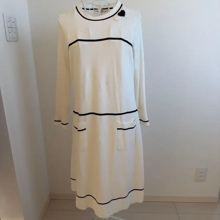 화이트 스트라이프 디자인, 하트 모양 비즈 브로치 포함 긴팔 원피스. - 색상: 화이트 - 디자인: 스트라이프 - 포켓 수: 2 - 장식: 하트 모양 비즈 브로치 - 소매 길이: 긴팔 방문해 주셔서 감사합니다.
