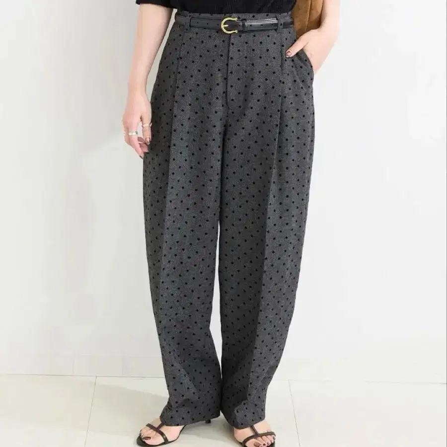 그레이 색상에 도트 무늬 하이웨스트 와이드 팬츠