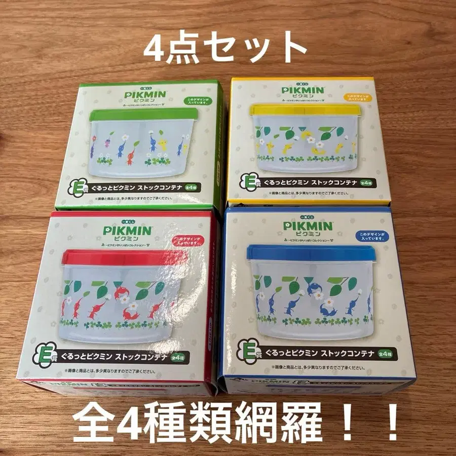 피크민 캐릭터가 그려진 재고 컨테이너 4개 세트.