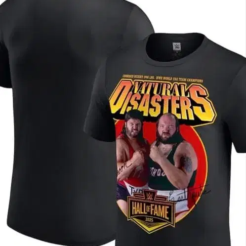 WWE 공식 내추럴 디ザスター즈 T셔츠 2025 명예의 전당 헌액 시 기념 T셔츠입니다. 미개봉 새상품으로 발송 예정입니다. WWE 프로레슬링 전일본 프로레슬링 WAR 스모 존 텐타 태풍