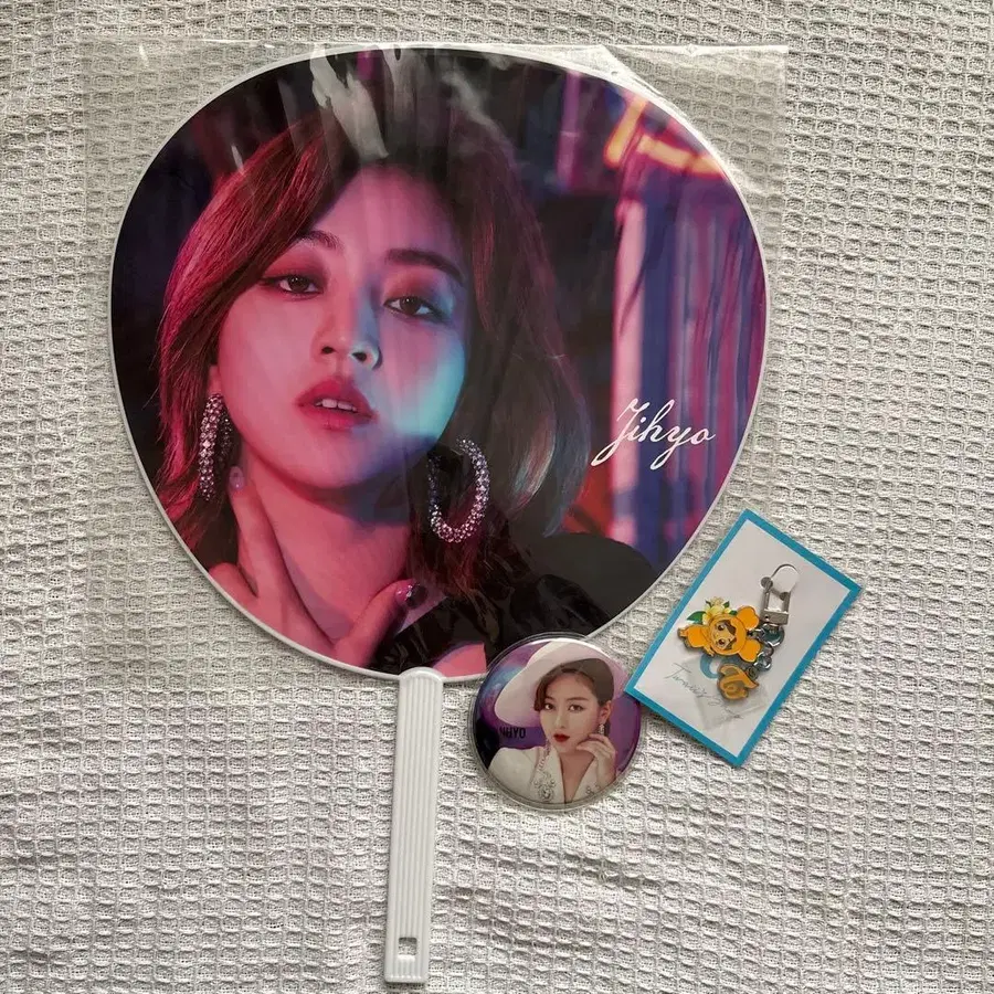 twice 지효 굿즈 3종 세트입니다. Breakthrough 부채 (미개봉) 지효 캔뱃지 키링 즉시 구매 〇