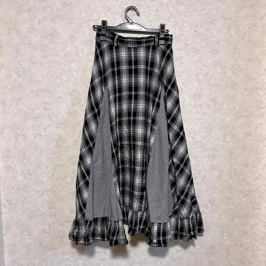 스커트 롱 스커트 체크 네이비 紺 블랙 엑시즈팜 절개 플레어 스커트 axes femme