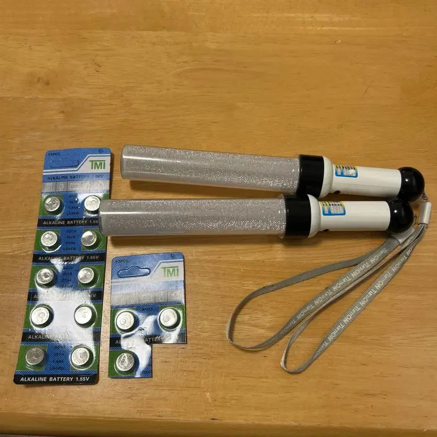 LED 응원봉 2개와 버튼 배터리 세트입니다. 응원봉에는 배터리가 들어 있는 상태로 배송됩니다. 방문해 주셔서 감사합니다.