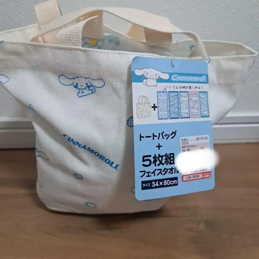 시나모롤 토트백 + 페이스타월 5개 세트 시마무라 해피백