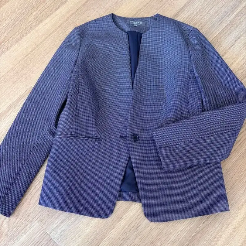 심플하고 세련된 디자인의 노카라 자켓, 비즈니스 씬에도 최적. 사이즈 40 어깨 너비 39 기장 57 개인 측정입니다. - 색상: 보라색에 가까운 네이비 - 디자인: 노카라 - 버튼: 1개 버튼 - 포켓: 앞에 2개의 포켓 접어서 발송합니다. 방문해 주셔서 감사합니다.