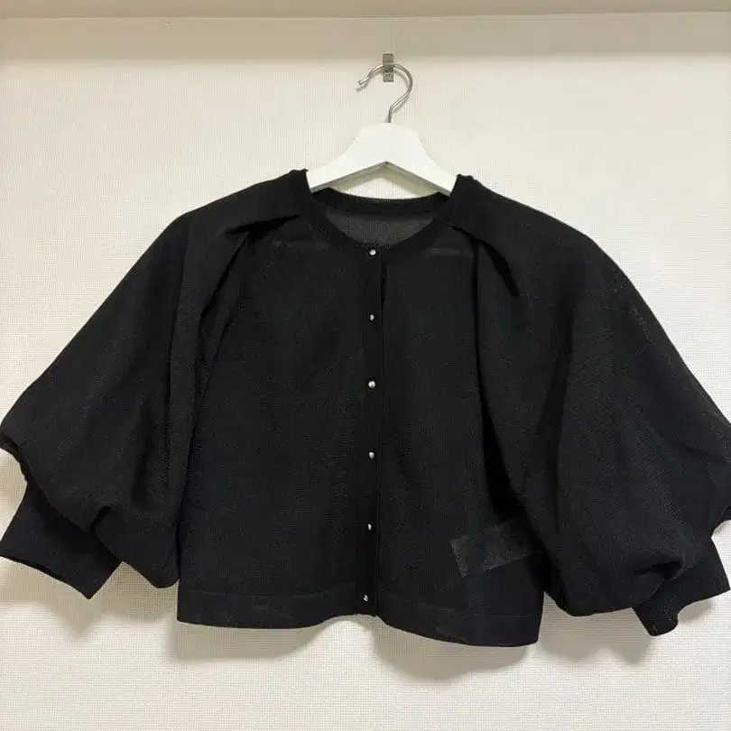 벌룬 슬리브 디자인의 블랙 가디건, 레이온과 폴리에스테르 소재로 가볍습니다. - 브랜드: FURFUR - 색상: 블랙 - 스타일: 벌룬 슬리브 - 사이즈: 원사이즈 - 소재: 레이온, 폴리에스테르, 튤 방문해 주셔서 감사합니다. 사이즈 - FREE SIZE