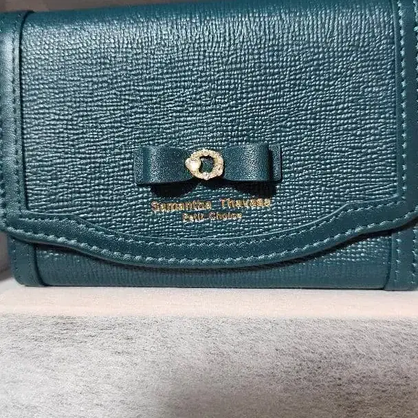 자동 번역되었어요. 원문보기틸 컬러의 리본 포함 접이식 지갑, 합성 피혁 소재에 스톤 로고가 특징입니다.