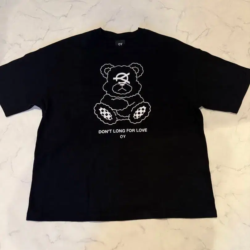 곰 그래픽이 특징인 블랙 T셔츠, 오버 사이즈 디자인으로 쾌적한 착용감. - 브랜드: OY - 디자인: 곰 그래픽 프린트 - 텍스트: DON'T LONG FOR LOVE - 색상: 블랙 - 스타일: 오버 사이즈 - 모델: 남성용 방문해 주셔서 감사합니다.
