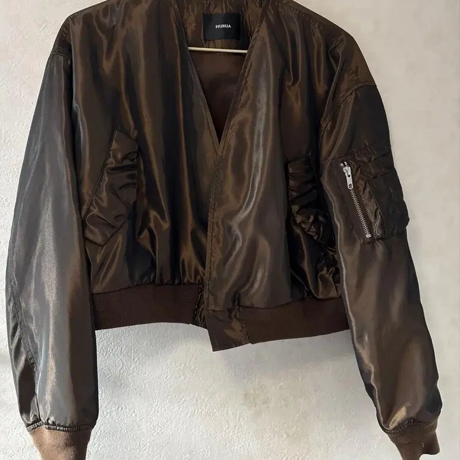 사이즈 - FREE SIZE 무루아의 숏 기장 자켓 색상 ‥ 브라운 ( 광택 있음 ) 총길이 약 45cm 어깨 너비 약 45cm 가슴 너비 약 50cm 겉옷 타입이라 앞면에 지퍼나 버튼 등은 달려 있지 않습니다.