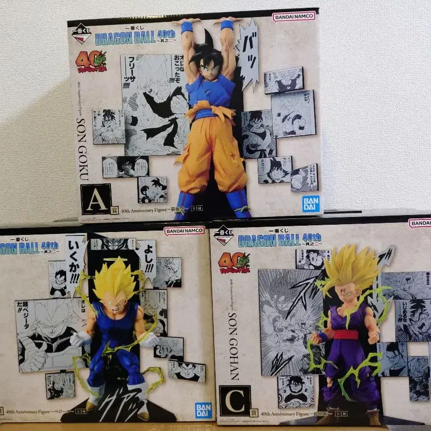 드래곤볼 피규어, 손오공, 베지터, 손오반 3체 세트. 제일복권 DRAGON BALL 40th ~그 두 번째~ A상 40th Anniversary Figure ~손오공~ B상 40th Anniversary Figure ~베지터~ C상 40th Anniversary Figure ~손오반~