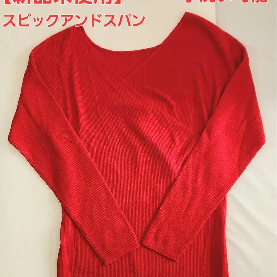 리브 편직의 빨간색 카슈쿨 V넥 긴팔 니트탑, 손세탁 가능하며 미사용 새상품입니다.