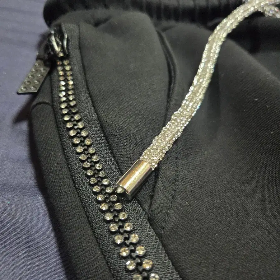 허리끈, 포켓, 밑단에 반짝이는 라메가 들어간 블랙 조거 팬츠, 쾌적한 코튼 블렌드 소재. - Color: Black - Material: Cotton Blend - Style: Jogger Pants - Features: Zipper Pockets - Waistband: Elastic with Drawstring 방문해 주셔서 감사합니다.